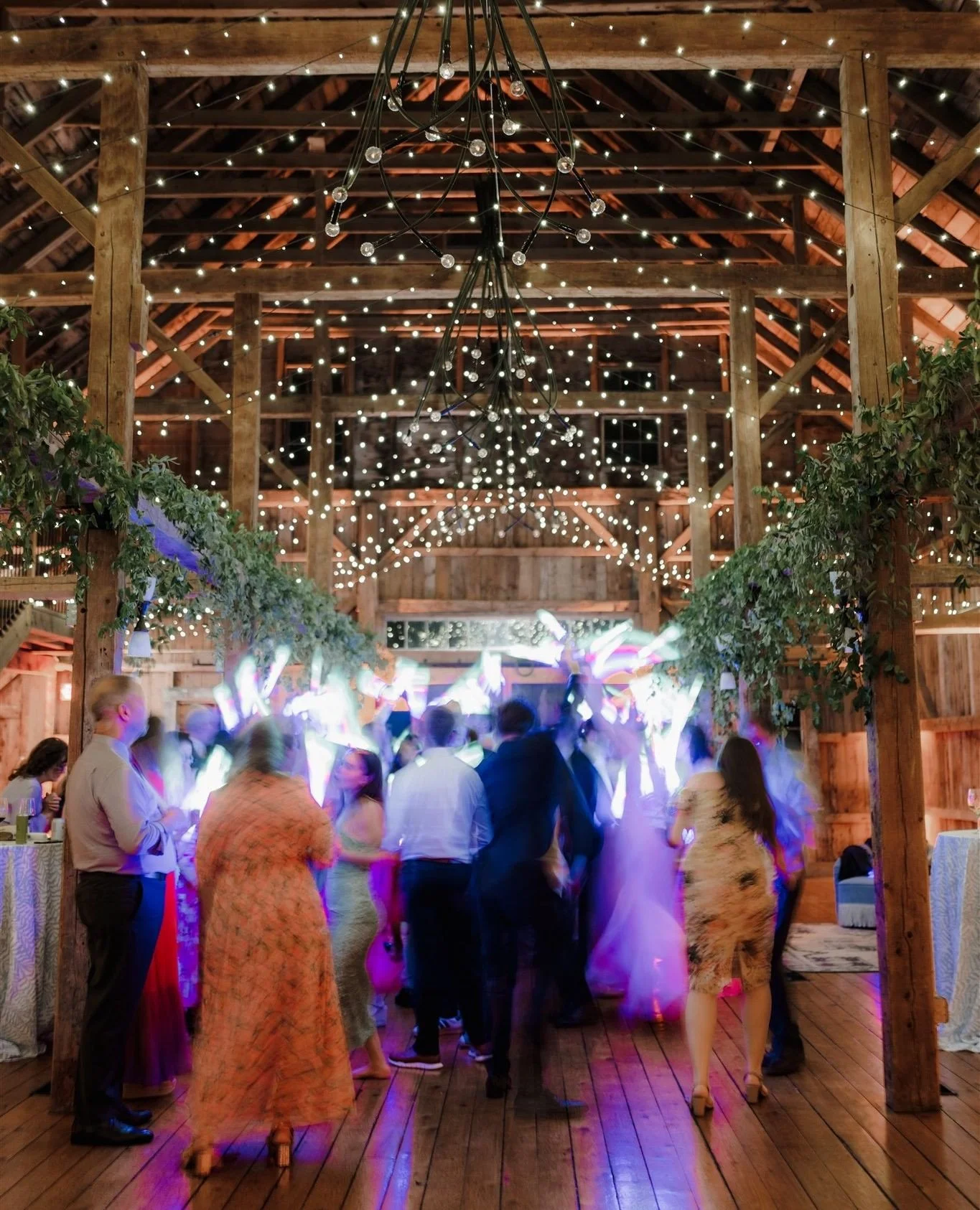 Between December and March, winter wedding couples have exclusive use of the property from Friday through Sunday. Snow-covered boardwalks wind through the pines to the winter grove, an outdoor entertaining space where fire pit nooks invite guests to linger and overhead lighting turns the forest into something quietly magical. Ceremonies may take place indoors in one of Flanagan Farm’s two barns or beneath the open sky, depending on the couple's vision and the season's temperament.