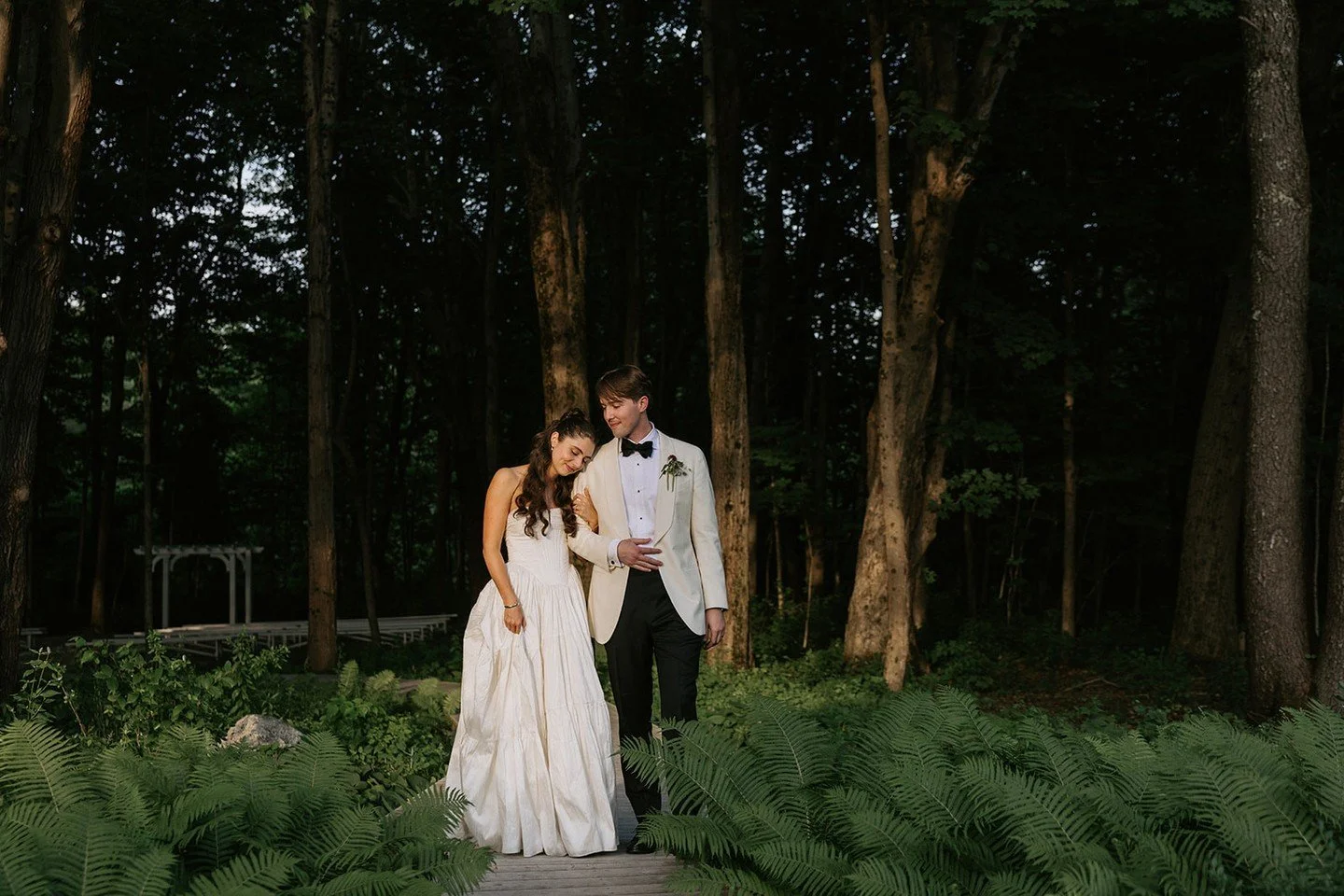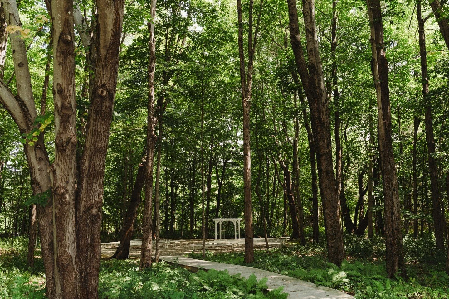 The woodland ceremony grove is the heart of the property: a peaceful, canopy-covered setting reached by a winding boardwalk, and often the place that stays with clients long after their first visit.