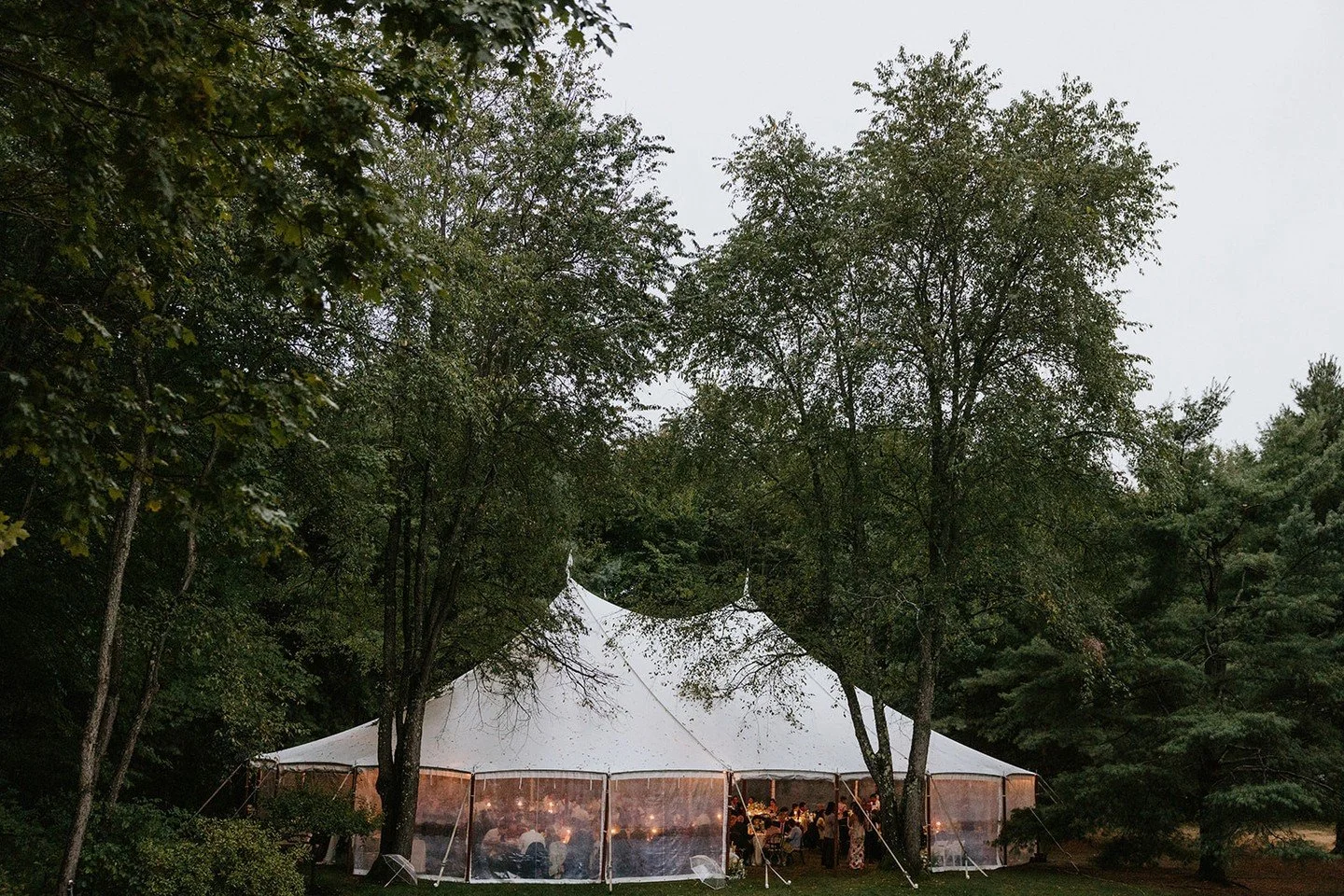 Walnut Hill’s meticulously manicured grounds are layered with intricate perennial gardens and shaded by mature trees, giving the estate its signature sense of intimacy and classic New England charm across spring, summer, and fall. Two distinct tenting locations allow couples to shape the flow of the celebration with ease. One tenting option is just off the granite patio for cocktails and another is nestled within the evergreen grove for a beautifully tented dinner.